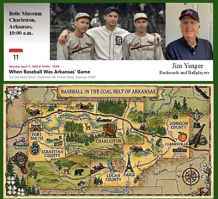 I have been looking forward to my morning at the Belle Museum in Charleston, where I will share the lost stories of baseball in the Coal Belt of West Central Arkansas (Johnson, Franklin, Logan, and Sebastian Counties).