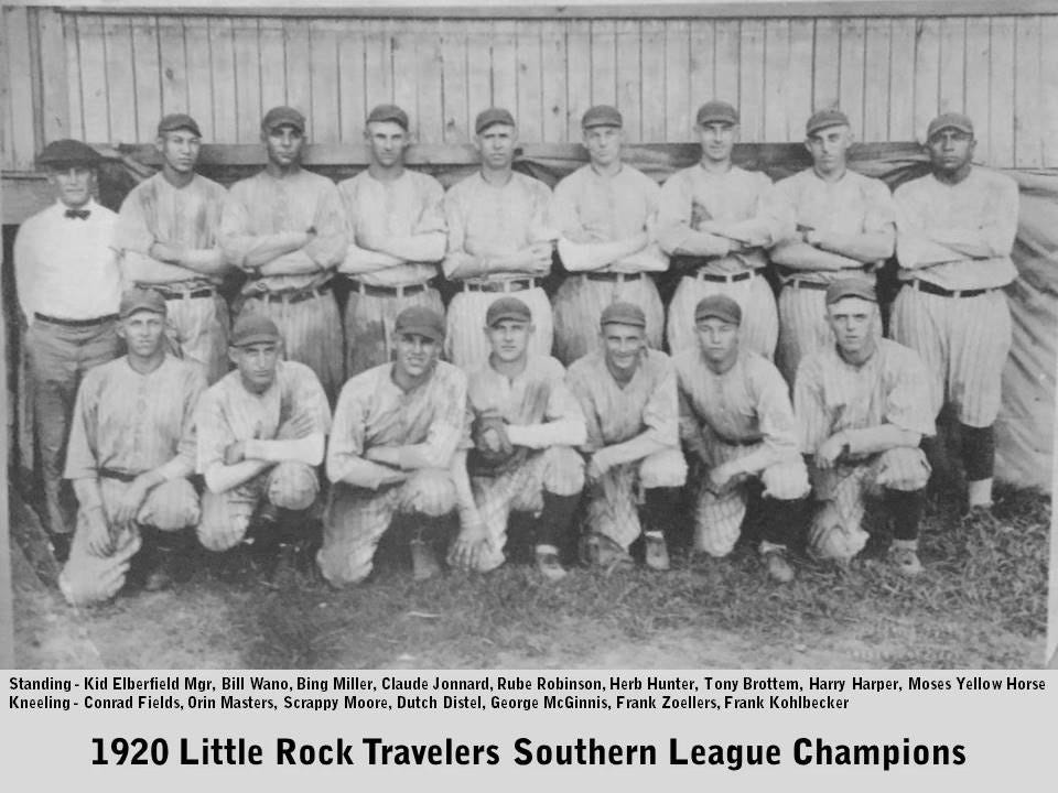 Baldy Karr, a farm boy from Mississippi, joined with Rube Robinson to give the 1919 Travs the best one-two starters in the Southern Association. The Travelers finished a strong second in the SA and drew 99,000+ to home games at Kavanaugh Field. The 1920 Travelers set an attendance record that lasted more than 30 years. Read the story of the 1920 Southern Association Champion Little Rock Travelers.
