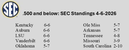 One or more of those teams will reach the regional round of the NCAA Baseball Championships. (perhaps host) SEC teams with a winning conference record seem almost guaranteed to host a regional.