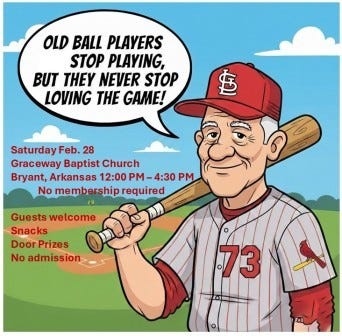 Join us Saturday, February 28, for a meeting of the Robinson-Kell Chapter of the Society for American Baseball Research. The meeting begins at noon at the Graceway Baptist Church of Bryant, Arkansas.